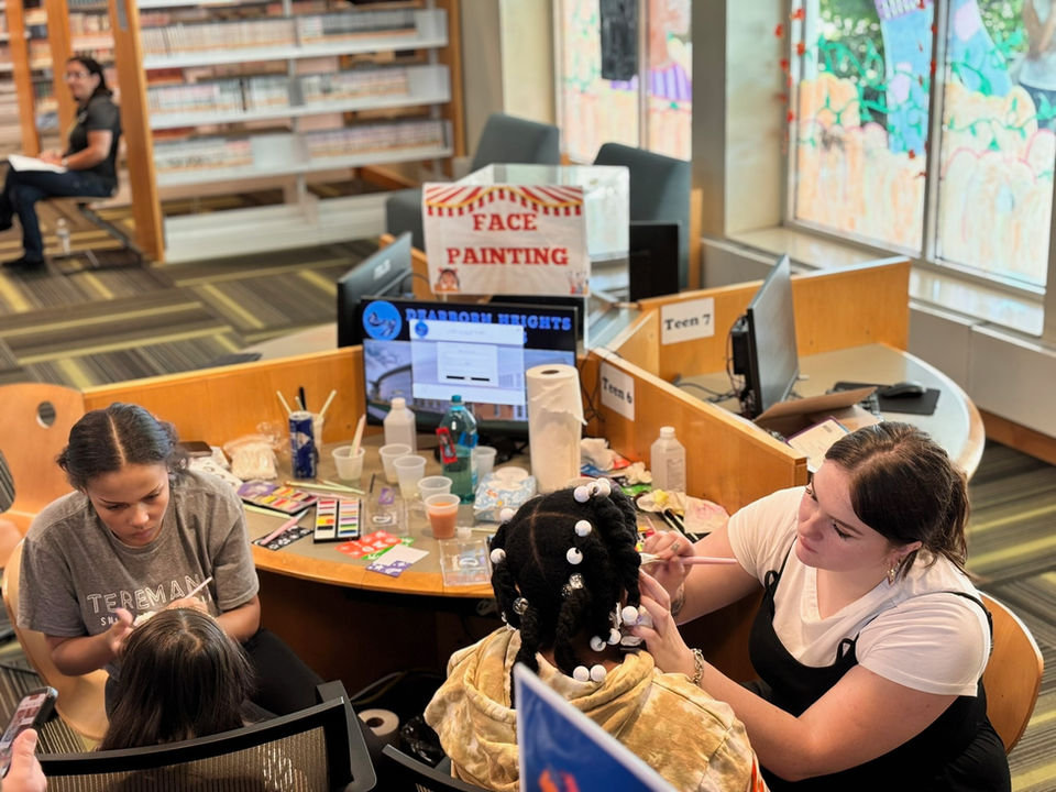 Featuring face painting, pumpkin decorating, fortune telling, carnival games and prizes, a large tin can raffle series, and cider and donuts, our yearly Fall Carnival is the largest event on the library's calendar. For 2025, we featured a petting zoo, free local cuisine tastings, a stilt walker, and balloon animals. Our goal is always to welcome our community for an afternoon of family-oriented fun and enrichment at Dearborn Heights Library.
